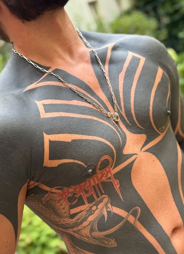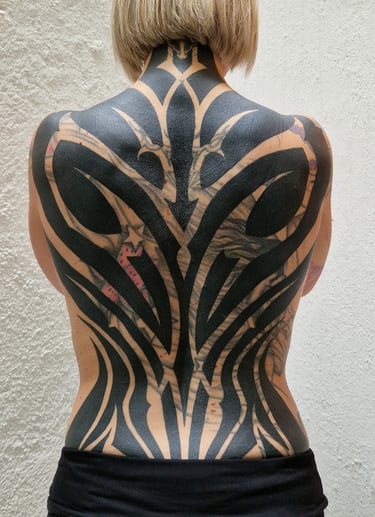The neotribal tattoo is the direct evolution of ancestral tribal art, freed from cultural boundaries and driven by a modern aesthetic. It is not a simple pattern; it is a conscious fusion between the graphic force of traditional tribal art and a contemporary visual language —often organic, industrial, alien, or cyberpunk—. We maintain the essential spirit: the powerful black line, the contrast, and the design that adapts to, enhances, and stylizes the body's natural shapes.